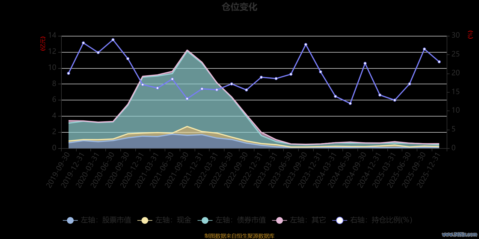 据定期报告数据统计,近三年平均股票仓位为19.07%,同类平均为72.57%。2020年上半年末基金达到28.97%的最高仓位,2024年上半年末最低,为11.98%。