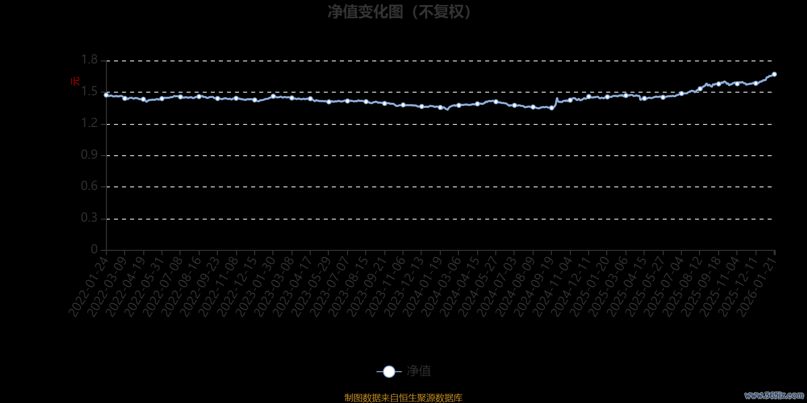 通过所选区间该基金净值增长率分位图,可以观察该基金与同类基金业绩比较情况。图为坐标原点到区间内某时点的净值增长率在同类基金中的分位数。