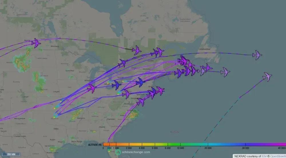 从6月15日夜间开始,有至少30架美国空军加油机从美国本土起飞,穿越大西洋前往欧洲,飞机型号主要是KC-135和KC-46,这类加油机的主要功能是为执行远程空袭的军用战机进行加油的,这些飞机很可能是为后续空袭伊朗的战斗机提供辅助。